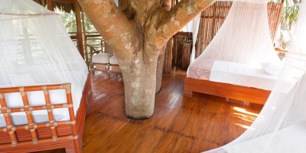 This suspended treehouse is 67 feet above the Amazon and surrounded by exotic wildlife. Travelers can access the 10 luxury rooms via the wooden walkways, steps and bridges, high above the jungle floor. One TripAdvisor reviewer said, “Nestled in the heart of the Amazon, it’s a small piece of paradise in the jungle. As you can imagine the rooms in the treehouse are like no other hotel room we have stayed in. Comfortable, beautifully finished, mosquito nets both inside and out. The showers might be cold, but they are definitely refreshing on a hot, muggy day!”