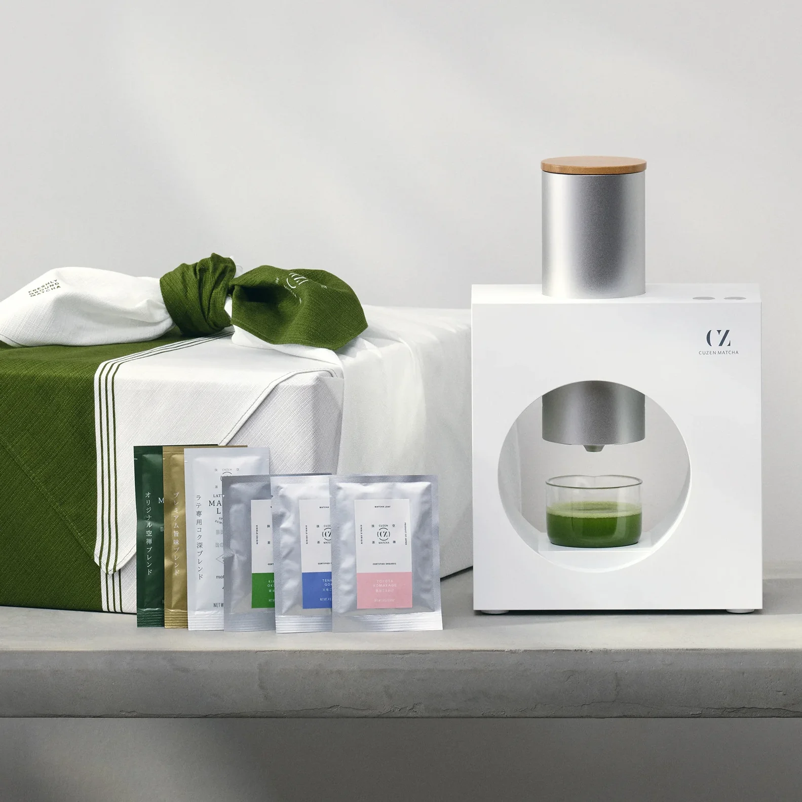 Cuzen Matcha is an innovative and attractive at-home matcha system that produces freshly ground matcha from organic shade-grown leaves via a beautifully designed machine. The Matcha Maker and Matcha Leaf sachets have been designed to work together to deliver the highest quality matcha drinking experience: the tea leaves are specially prepared to fit the compact ceramic mill, which produces a fine matcha powder that’s then automatically whisked into water, recreating the ancient art of stone ground Japanese matcha. The whole concept is engineered to reproduce the qualities of a traditional stone mill and bamboo whisk—with much less effort.