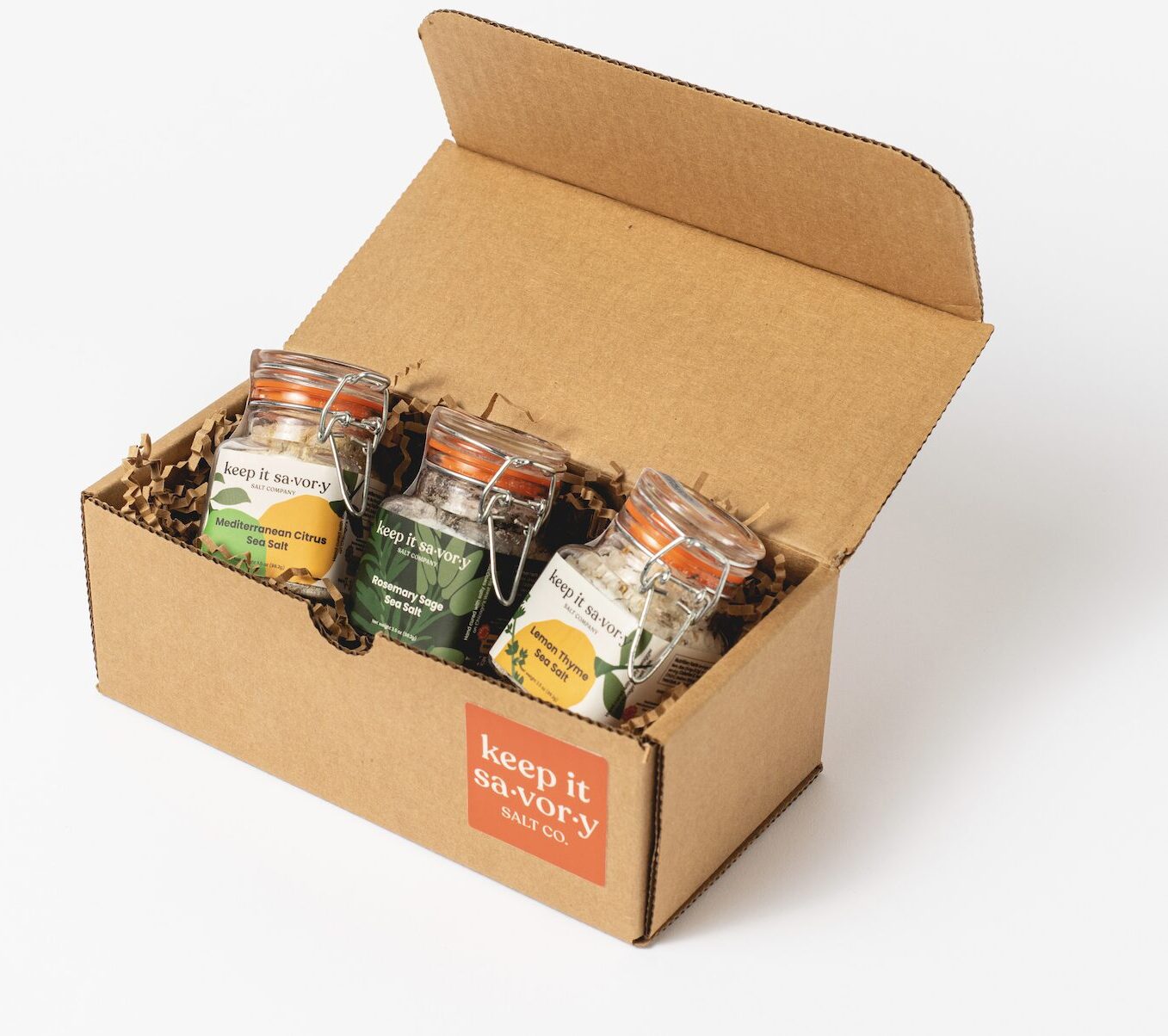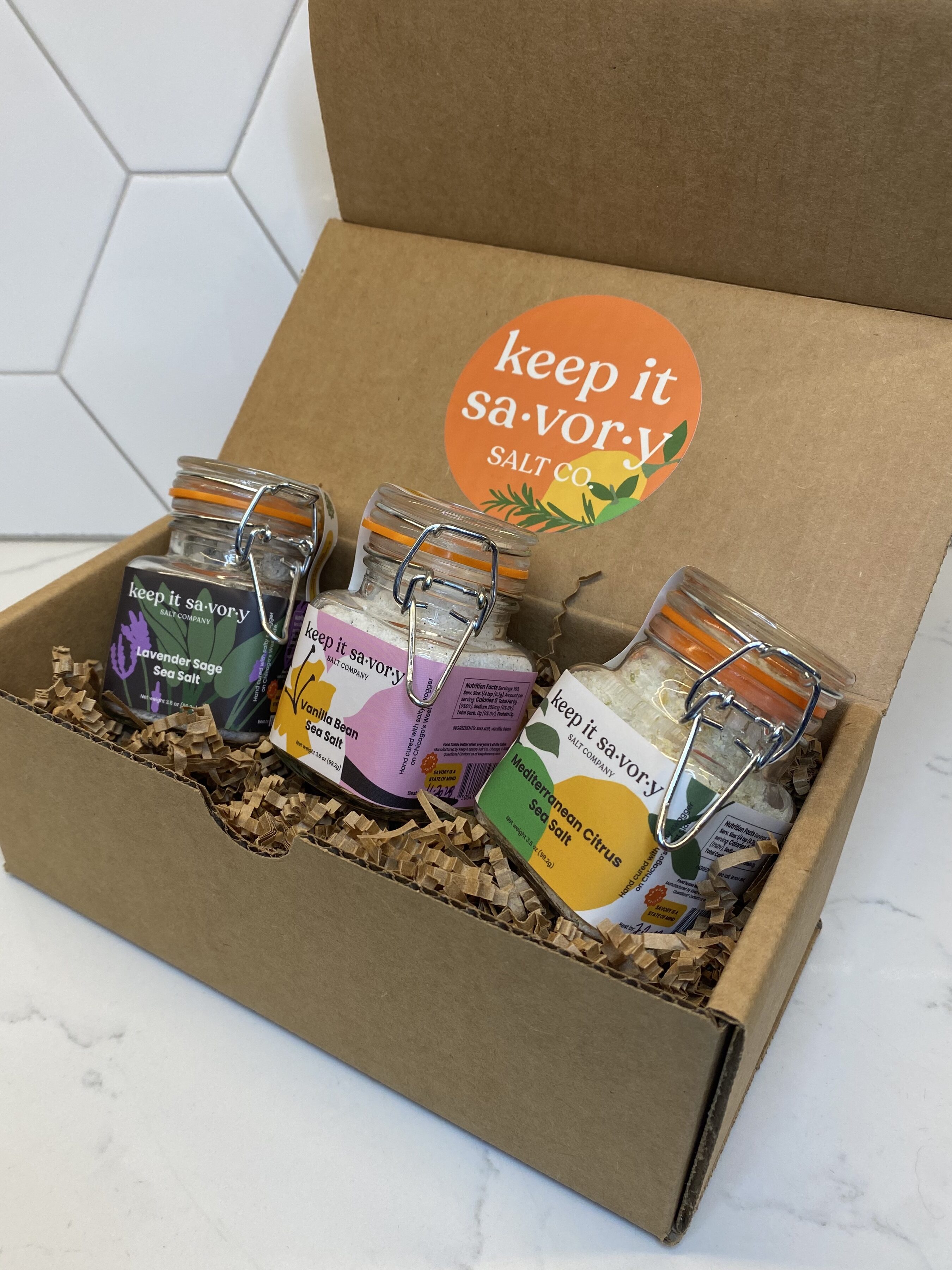 And if you’re a connoisseur, try the box that includes Lavender Sage Sea Salt and Vanilla Bean Sea Salt.