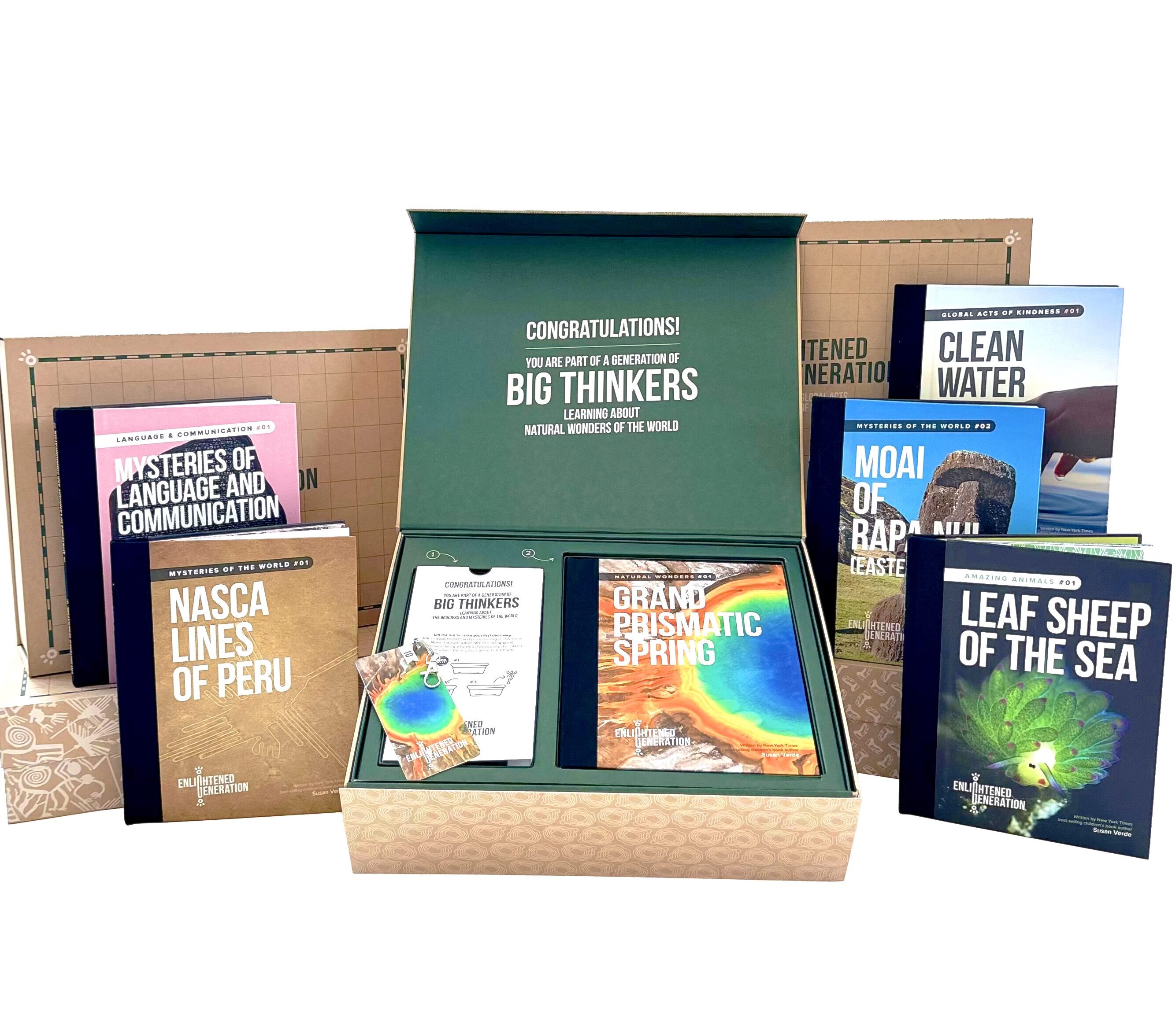 Enlightened Generation offers boxed experiences for children ages 3-10 (and the whole family) that encourage thinking beyond the digital world, and working together to unfold knowledge rather than compete over toys or tech. Get ready to also unbox memorable and teachable moments with your child and effortlessly kickstart their curiosity in STEM, ESG and more. Plus, Enlightened Generation gives 5% of profits from each purchase to educational and access-driven nonprofits globally, in alignment with the subject matter of each collection.