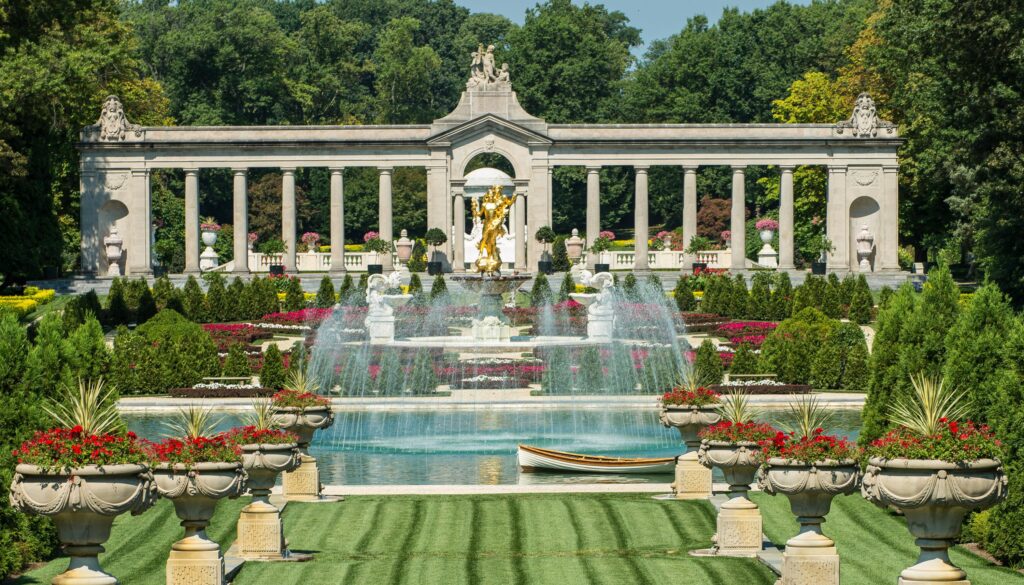 Nemours Estate: Historic estate in Wilmington, Delaware, featuring a 77-room mansion and expansive, French-inspired formal gardens built by industrialist Alfred I. du Pont for his wife. Known for its precision and majesty, the estate combines formal elements, such as fountains, mazes, colonnades, and the “Temple of Love,” with vast native woodlands and features a chauffeur’s garage housing vintage automobiles. Originally built as a grand gift for his second wife, Alicia Heyward Bradford, the estate is now a publicly accessible attraction, offering self-guided tours and various events.