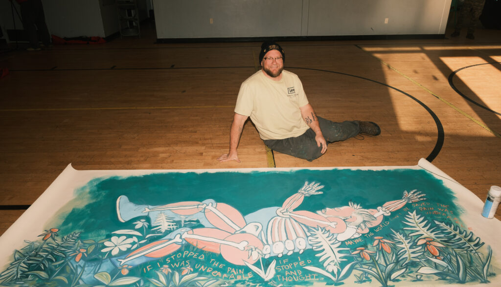 “Body Mapping is something I was introduced to early on in my work at St. Luke’s, directing devised theatre for The NiteStar program, and it became an essential tool,” explains Paley. “I was able to see how profound a role it could play with people in reclaiming their own identity. And then I saw this again, working with non-binary individuals in the shelter system and inside the first transgender unit of a NYC prison through my work with The Women’s Prison Association. The artists of Transcend are professionals. They came in focused, open, and seeking community. Watching that fearless creative spirit find its footing in the form of these incredible panels was a privilege and a joy.”