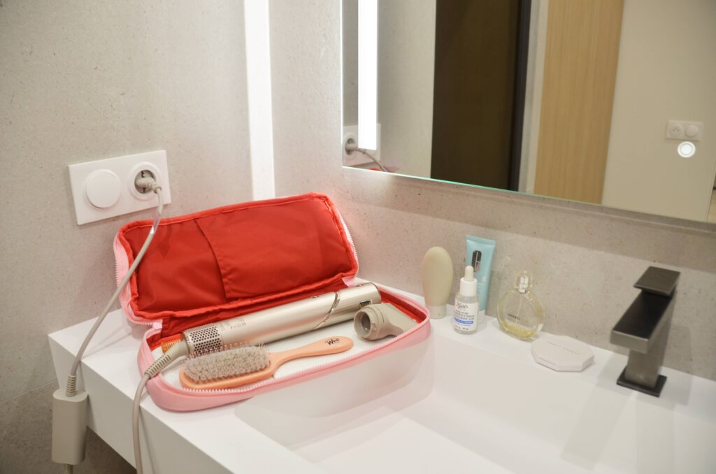 For example, have you ever discovered a toiletries bag or zippered pouch that adequately contains everything you need for your hair, skincare, and grooming needs—whatever your gender? She needed “something that could hold my hot tools, protect my jewelry, and keep my skincare from spilling all over everything else. So I decided to create it.”