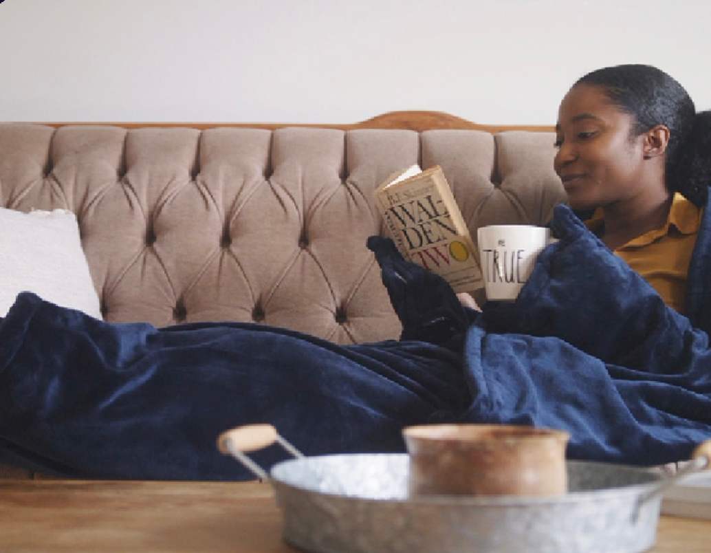 The “swaddle” feature is particularly beneficial for individuals with a strained nervous system and sensory sensitivities. The CozyThrow💤™ is a self-care item that comes in four soothing colors—Midnight, Coral, Sage, and Plum—and looks good when not in use. Made from dual-sided luxury, machine-washable fabrics, the CozyThrow💤™ and CozyCo💤™ provide a sensory-rich experience while helping users to regulate body temperature. The hand and foot pockets can be used for additional warmth and comfort. Fold it flat for easy storage or drape it over a chair or sofa, as you would a regular throw.