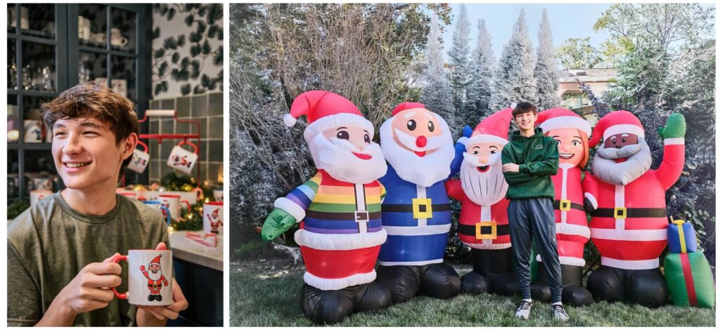 Growing up in a half-Korean family, Cason noticed that holiday décor rarely reflected the world he saw at home, so he created a 6-ft inflatable Asian Santa. Today, at only 17 years of age, Cason has expanded his line to include a Pride Santa (a bestseller, and there’s also a Black Santa!), a Sandra Claus, as well as a Hanukkah Hank Inflatable. Plus, apparel, art, ornaments and gift bundles all sold at Walmart, Amazon, Etsy, and from the website InclusiveChristmas.com.