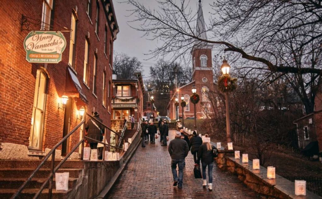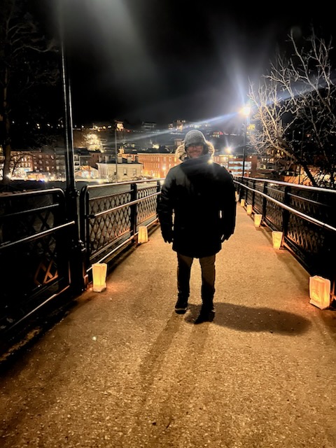 After eating, drinking, and shopping our way through Main Street, we took in the luminaries lining the area. Walking across a candlelit bridge over the frozen Galena River to Grant Park was both peaceful and stunning—enough to make me forget the freezing temps and continue thawing my cold heart. On the bridge, Michael and I snuck a kiss, ensuring I did indeed have my Hallmark moment and made the yuletide all the more gay. Despite my best efforts to resist, our experiences in Galena gave me a boost of Christmas cheer.