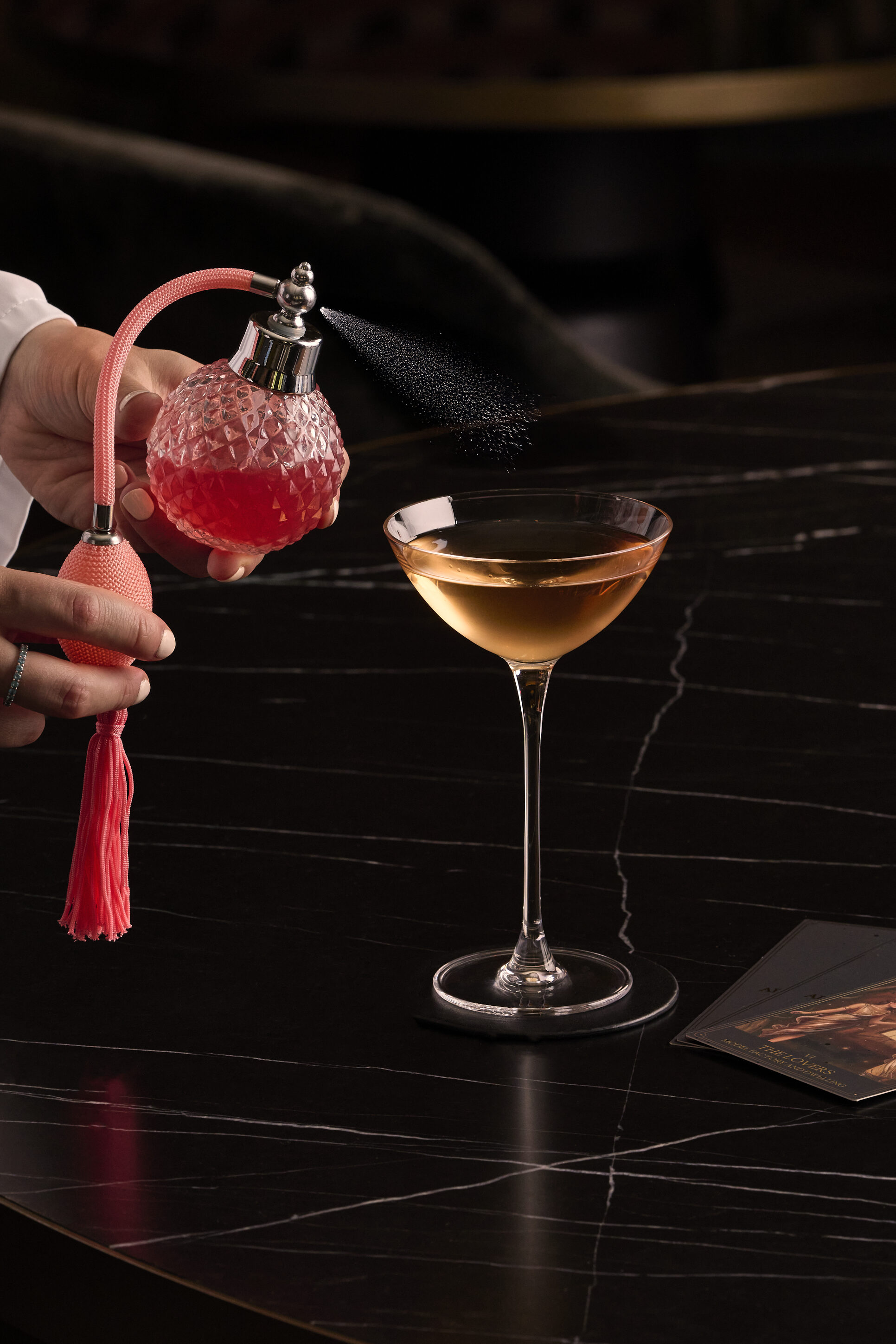 Upon arrival at McRae Bar, the journey unfolds through taste, aroma, design, and narrative. Guests draw a tarot card rather than order a drink, transforming a simple cocktail selection into a personal ritual guided by intuition and chance, facilitated by McRae Bar’s expert bartenders.