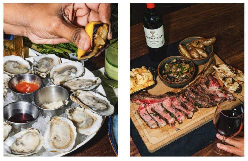 A North Carolina institution now gets the Raleigh treatment at this elegant outpost in downtown Raleigh’s Smoky Hollow district. The Crunkleton, which made its name as one of North Carolina’s top cocktail bars over the last decade, has gone full steakhouse — adding dry-aged tomahawks, oysters, and buttery vegetables (cooked over live wood fire) to its repertoire of antique spirits and pre-Prohibition pours. While the menu leans lavish — think house-ground burgers, coal-roasted seafood, and sharable steaks served alongside old-school sides and a deep bench of rare spirits.
