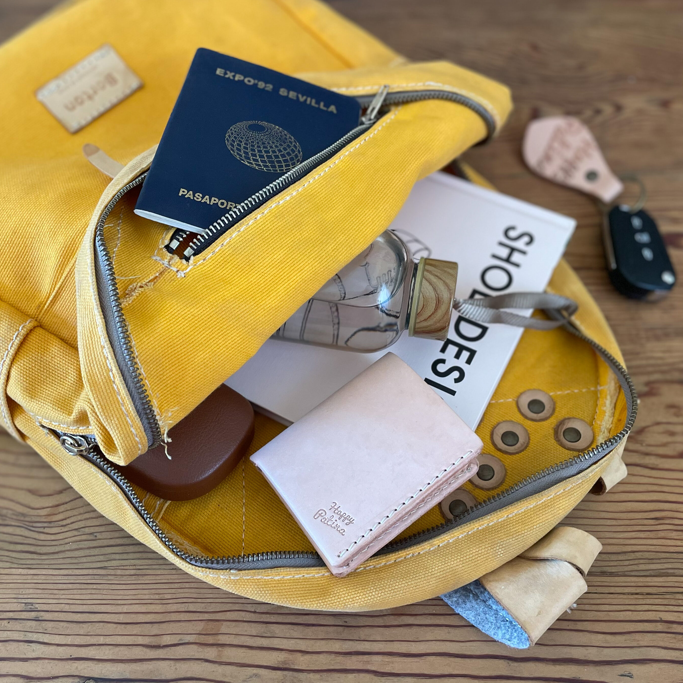 Every piece is crafted with longevity and portability in mind. In this way, HappyPatina invites people to reconnect with their belongings in an essential and simple way. All of the accessories designed by Oscar Arenas—from wallets to watch bands, sunglass cases to slippers, key fobs to catch-alls—offer sustainable alternatives to products we are so used to seeing mass-produced using plastic. They appeal to the frequent traveler who has come to value a minimal carbon footprint. Plus, there is something satisfying about owning fewer items, keeping them for longer, and finding new beauty in them as they age.