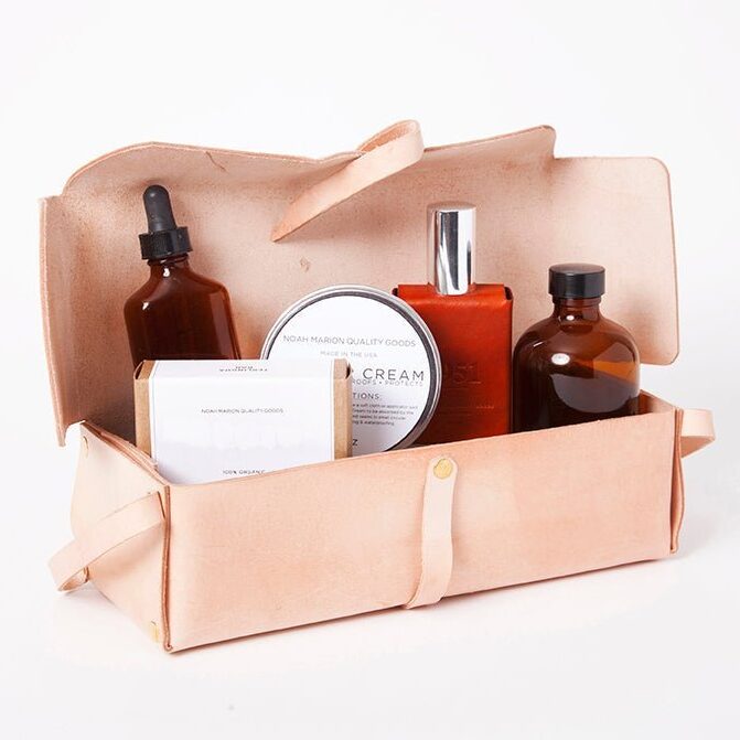 I always travel with the document folio, my dopp kit toiletry bag, and a slim card wallet. They keep everything organized and make any hotel room feel more like my own home.