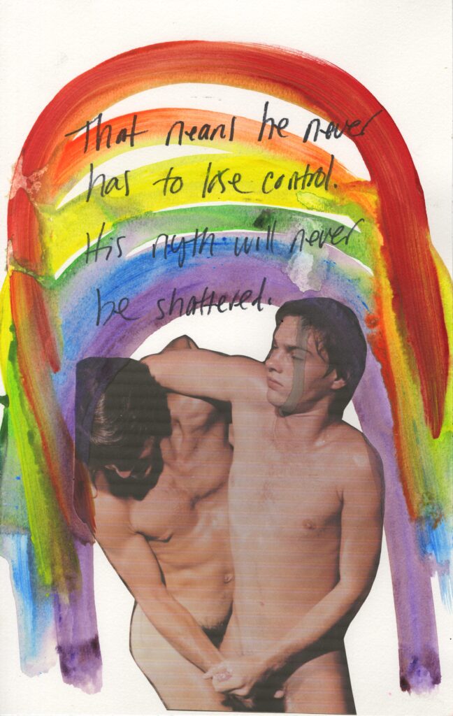 Wasteland is a hybrid: a queer art ‘novel’ that explores themes of gay intimacy, aesthetics, eroticism, anger, and angst. Its vibe is expressive, exploratory, open, and unapologetic—enhanced by watercolor, pen and ink, Dada-esque cutouts, and snatches from journal entries.