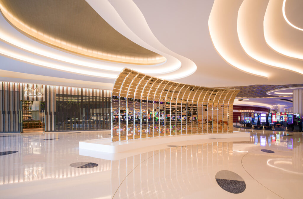In terms of these properties, the new big daddy of them all right now is Fontainebleau Las Vegas, a 67-story, vertically integrated luxury resort that brings an astonishing scale of integrated art to the Strip. Certified by the Green Building, the resort’s thoughtful and soaring design allows guests to move effortlessly among 3,644 luxury hotel rooms and suites, 550,000 square feet of customizable convention space, 150,000 square feet of gaming space, and always, all around, is space to boggle the mind of many an artist—from the spaceship style interiors of lobby areas to the cozy, club-like nooks of bars and restaurants.