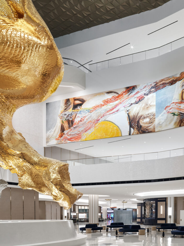 In fact, the art has been incorporated into the resort’s elegant design, Fontainebleau Las Vegas’ stunning fine art collection embodies the brand’s long-standing commitment to thought- provoking and immersive displays rather than decoration. This collection features exclusive works that enhance the guest experience with unique artistic expressions.