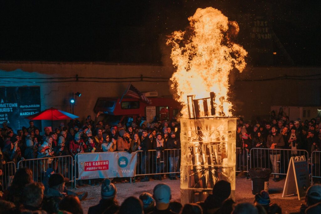 Attendees can explore large-scale light installations, ice sculptures, and interactive art while warming up around bonfires, cocktail “igloos” and fire-pit s’mores stations. The festival also features local food trucks, hot chocolate stands, and artist activations inside cozy warming tents.