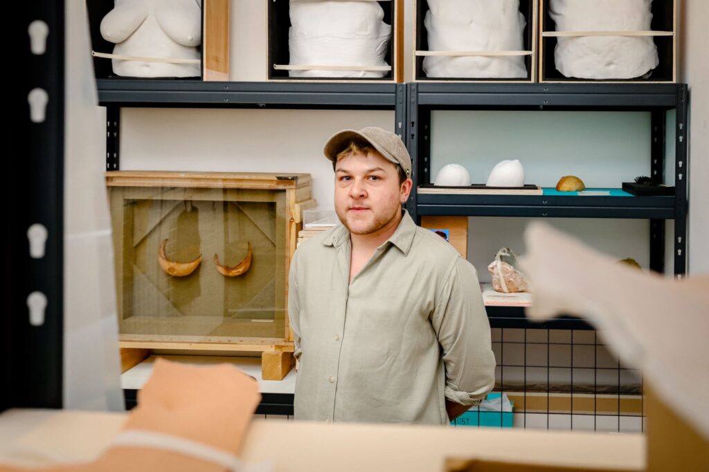Disguised as a museum store, the exhibition comprises drawings, films, photographs, letters, sculptures, and collected objects. The installation explores the political priorities of museum collecting, entering the emotions and physicality of being trans into a fictionalized archive. The seven-year journey is from the artist’s first visit to a GP to his recovery after surgery revisions.